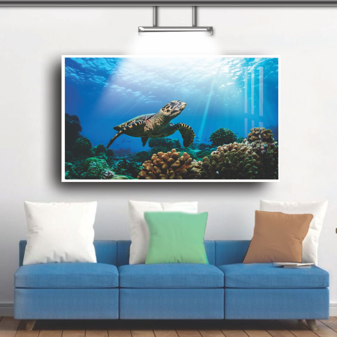 Este belo quadro decorativo Tartaruga no Mar é uma obra de arte de primeira linha. Impresso com detalhes realistas e cores vibrantes, esta pintura é perfeita para qualquer fã de arte ou de decoração de interiores elegante. Compre hoje e adicione um toque de beleza à sua casa.